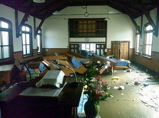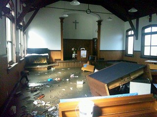 牧師館や教会の片づけもYMCAの呼びかけに応じてこられた山の会のボランティア・YMCAのスタッフの方達に助けられながら、29日帰る日の朝まで、ヘドロを出し水で流す作業を繰り返しましたが、生活できるまでには、次々と問題があり、何とか力になりたいと思って外から現地に行った者でも、何度も茫然となっては多くの方の善意に励まされ作業を行いました。4月に入って、教会・牧師館共に全壊の罹災証明が発行されたと連絡がありました。