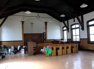 3月29日、地震から3週間経って大通りとその周辺で初めて教会・牧師館の一部に電気が灯りました。ボランティアの拠点は、寝泊まりも含めてひかり幼稚園から教会に移されました。